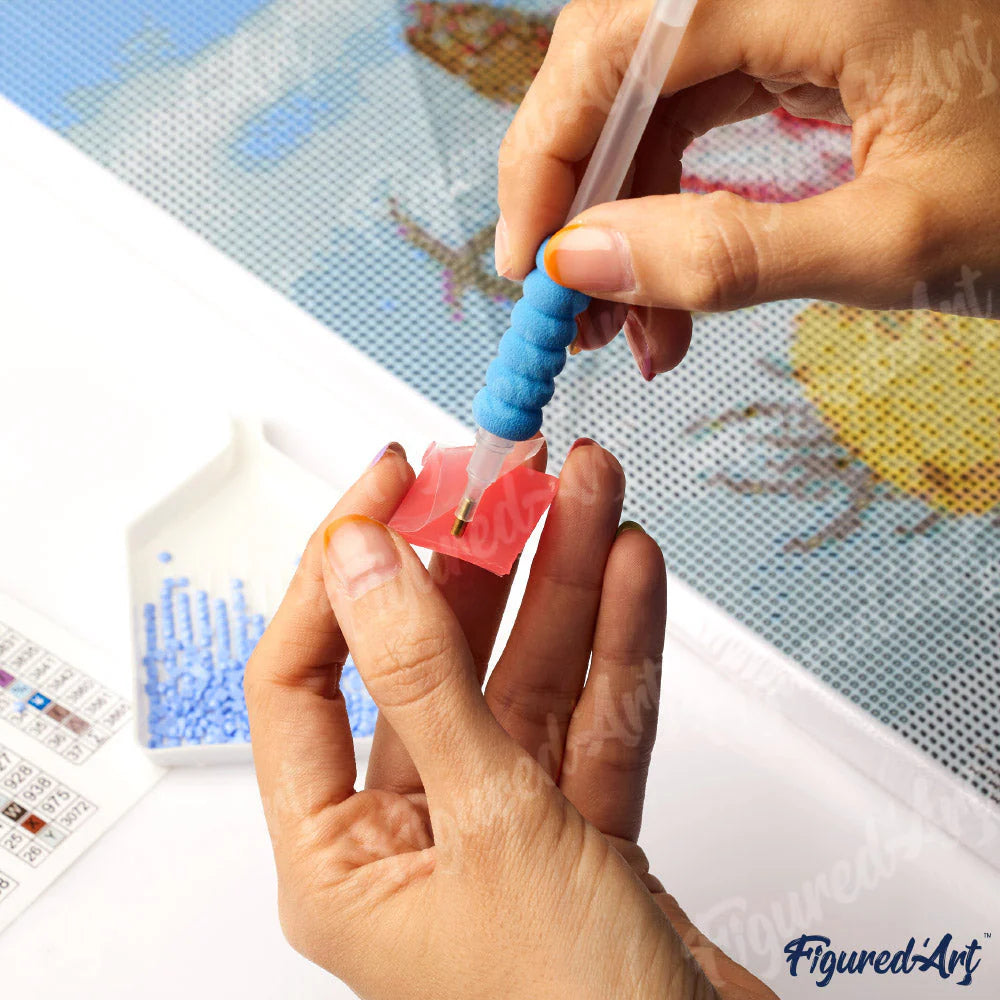 It can be considered a combination of Paint by numbers and Cross-Stitch. Diamond Painting lets you create dazzling masterpiece using rhinestones called "diamonds".