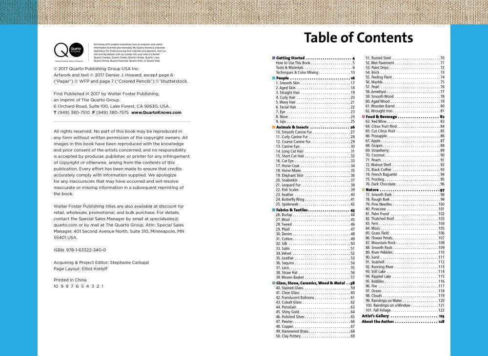 101 Textures in Colored Pencil provides artists with step-by-step instructions for drawing a wide variety of the most common textures and surfaces, including sand, water, metals, foliage, wood, fabrics, stone, grass, hair, and many more.