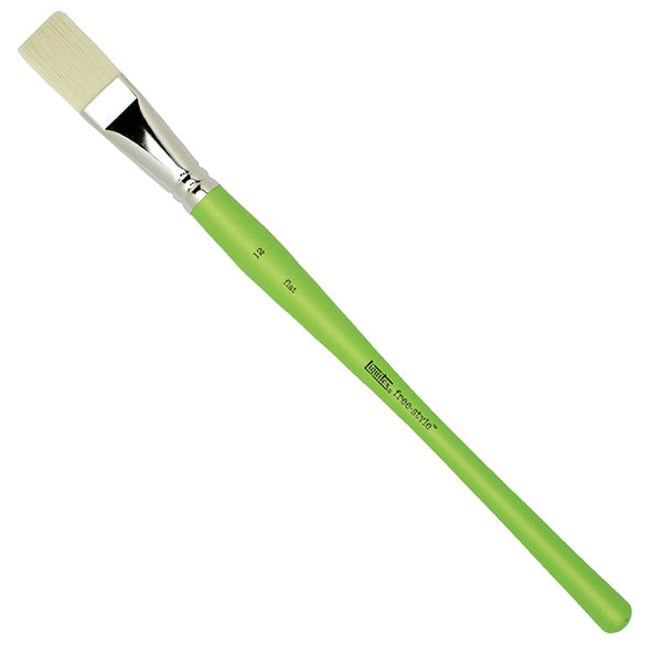 A professional long-handled brush with a rectangular, square-ended bristle for bold strokes and chisel-like lines. Sustainable nylon filaments have the ideal spring and snap for acrylic media, while the weighted handle is ergonomically designed for balance and comfort.