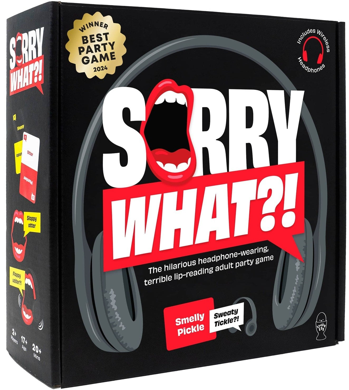 Slip on the ridiculously loud ‘Sorry What’ headphones and try to lip-read the outrageous phrases! A must-have for party games, adult games, and family game nights.
