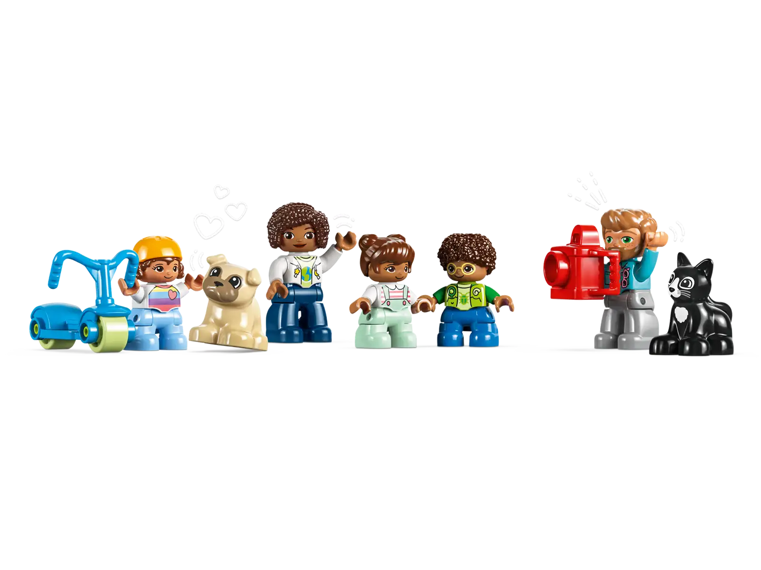 - Everybody’s welcome – This set comes with 7 figures, including a mom and dad, 3 kids and a toy cat and dog, ensuring a real diversity of role-play possibilities