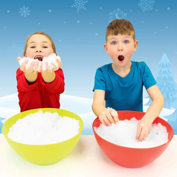Just sprinkle the white powder over water to watch it transform into realistic fluffy snow!