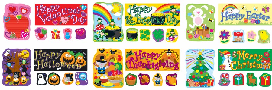 6 x holiday headers (Valentines, St Patricks, Easter, Halloween, Thanks Giving & Christmas)