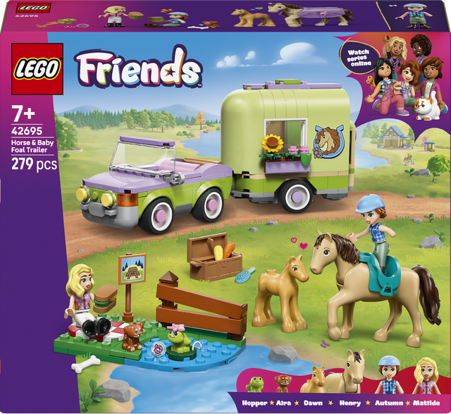 Let kids ages 7 and up enjoy hours of animal care role play with the LEGO® Friends Horse & Baby Foal Trailer building toy (42695).