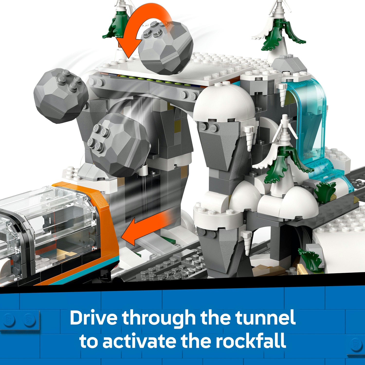 Kids get 22 pieces of train track, a toy mountain tunnel with a rockfall function, an outpost building and a mining cave. Just add the Johnny Thunder and 5 explorer minifigures, plus 2 Arctic fox figures, and let the adventures begin.