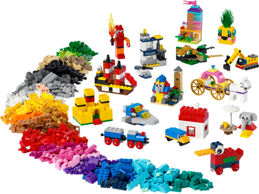 Build anything you can imagine with these huge LEGO® Classic brick sets, packed with LEGO® parts, including wheels, windows, eyes, leaves, flags, handles, and of course the signature bricks themselves. Each set opens up new possibilities for designing and building something truly original, and the instructions give you some ideas so you can get started on your own adventures right away. Build huge vehicles , tiny animals or a combination of both! You can combine all sets and let your imagination run wild.