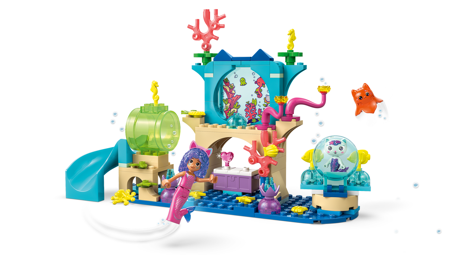 - LEGO® Gabby’s Dollhouse playset – Kids can recreate stories with Gabby and role-play aquarium adventures of their own