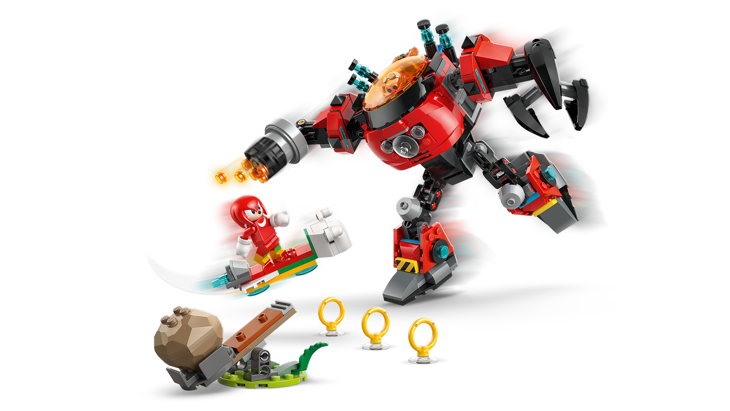 - LEGO® mech adventures – This fighting toy also includes a catapult with terrain that launches boulders with a lever push, letting Sonic fans play out endless action with Knuckles and Dr. Eggman