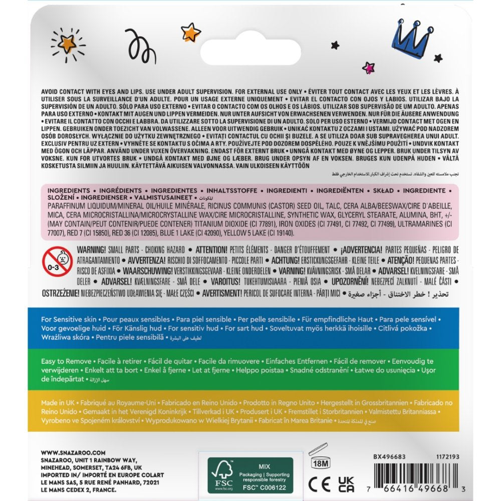 As with all Snazaroo Face Paints, they are easy to remove (wash off with soap), hypoallergenic and non-toxic.