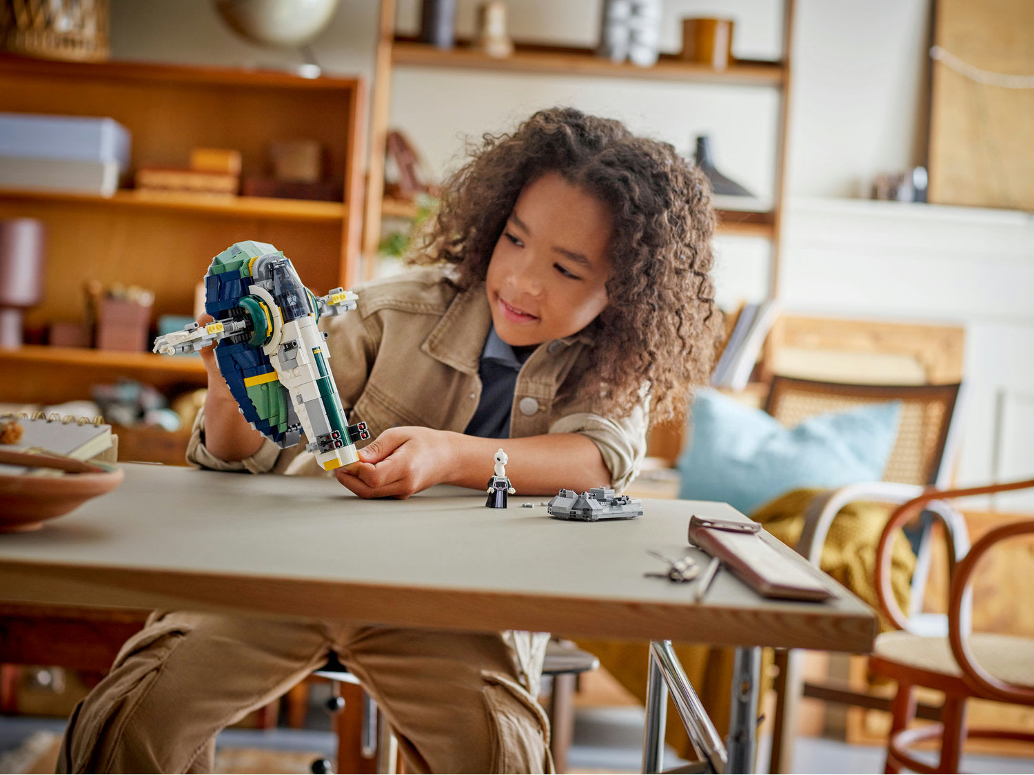 A top Star Wars™ gift for kids, the set includes 3 LEGO minifigures: Jango Fett with 2 blaster pistols and a jetpack, Young Boba Fett and Lama Su. There is also a service cart that can be used to move the starship in play scenarios or as a stand to create fantasy decor between playtimes.