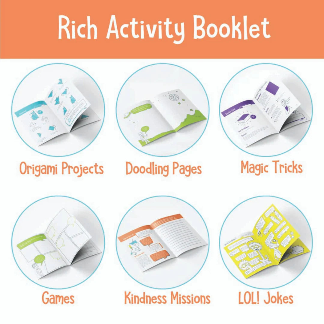 Includes a 60+ page activity book that has jokes, riddles, games, doodling sheets, and more!