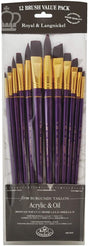 12 Piece Royal & Langnickel of flat variety brushes for oil and acrylic paint.