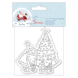 This pack contains 1 clear stamp featuring Santa placing presents under the tree. Simply apply ink and stamp on to cards, tags and more for a truly personal touch. Colour using inks or pens for added style!"