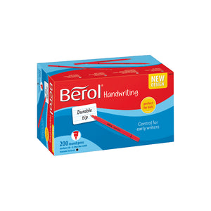 Berol Handwriting Pen Black (Pack of 200) 2056778. Handwriting pen designed specifically for school children. Thick, round shape is easy to hold. Durable tip. Washable ink will wash out of most fabrics. Ventilated cap. Medium tip for a 0.7mm line width.