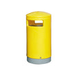 Outdoor Hooded Top Bin 75 Litre Yellow 321774. Removable body for ease of emptying. Hooded top bin prevents ingress of rainwater. Complete with an inner liner, lock and base. Height: 1000mm. Diameter: 485mm. Polyethylene with a galvanised steel liner.