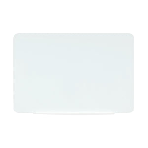 Bi-Office Magnetic Glass Drywipe Board 1200 x 900mm GL080101. Frameless with invisible fixings. 4mm thick tempered glass for safety. Supplied with metal pen tray and wall fixings.