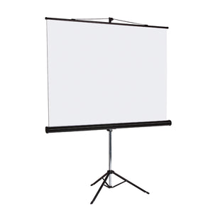 Bi-Office Tripod Projection Screen with matte white projection surface rugged steel case chrome legs and carry handle. Easy to set up ideal for computer video slide and overhead projectors. Manufactured from flame retardant material. Size: 1500x1500mm.