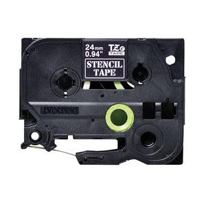 Brother Stencil Tape Black 24mm STe-151. Stencil tape for Brother P-Touch label makers. Tape size: 24mmx3m. Thermal sensitive layer and non-adhesive design allows you to directly mark parts. Continuous design allows you to create stencils of any length.