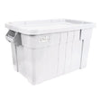 Commercial grade polyethylene. Easy grip handles for lifting. Drain holes in handles. Snap tight lids for secure contents. Reinforced rib base. Stack securely. Capacity 75 litres. Dimensions L707xW441xD384mm. White. Non returnable.