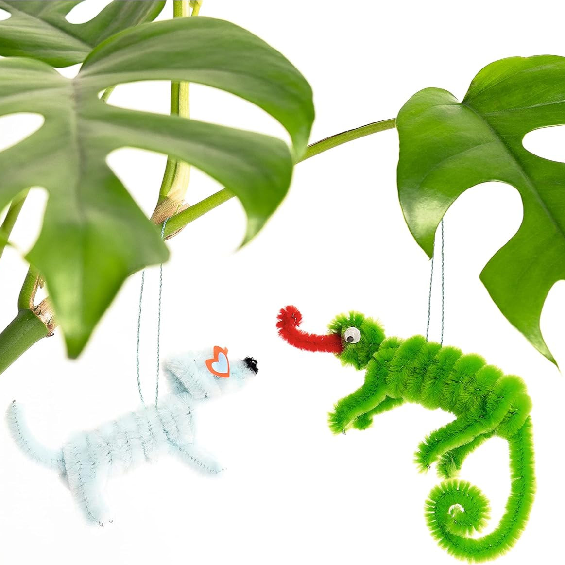 Package includes 30 chenille threads in many rainbow colours, pre cut foam rubber shapes and stripes, cute stickers, 30 pompom balls, wiggly eyes and soft feathers