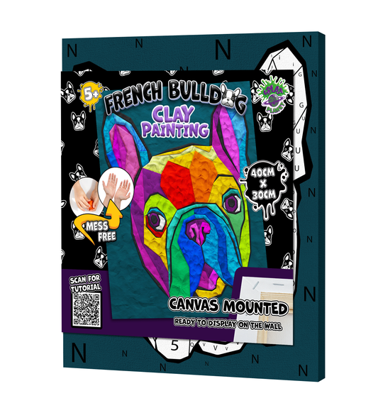 It comes already pre-stretched on a frame so you don't need to fiddle around unrolling it and flattening it. It's like a paint by numbers but with mess free air dry clay paints.