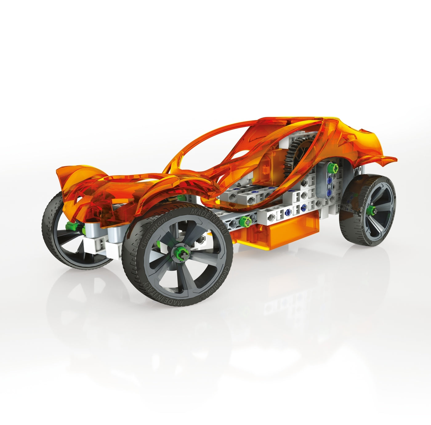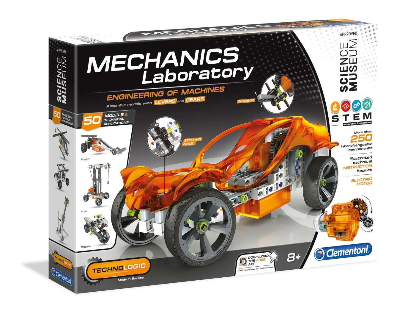 It is even possible to build a helicopter, a motorised crane and a car with an electric engine in which a child can move the gear stick and steering wheel! The large illustrated scientific manuals will guide the child through the various stages of assembly, which can done in complete safety.
