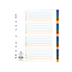 Concord polypropylene Extra Wide A-Z Dividers. Hard wearing plastic indexes with printed tabs. Reinforced contents page and a euro punched spine - the ideal divider to use with punched pockets.
