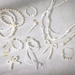 You can easily make beautiful beaded jewellery that is all the rage right now. With our Craft Mix, you can make jewellery with delicate, pearlescent white beads – and in your own unique design.