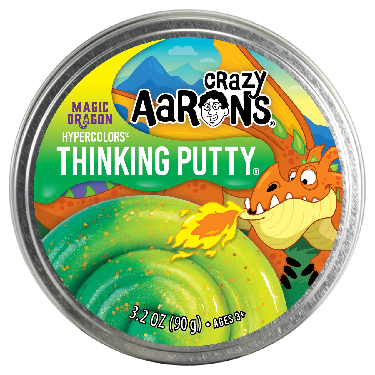 This charming creature can be your enchanted best friend. Magic Dragon® Thinking Putty® includes the marvelous Hypercolor® effect and changes from forest green to golden yellow using the heat of your hands. The magical bronze sparkles will captivate your gaze!