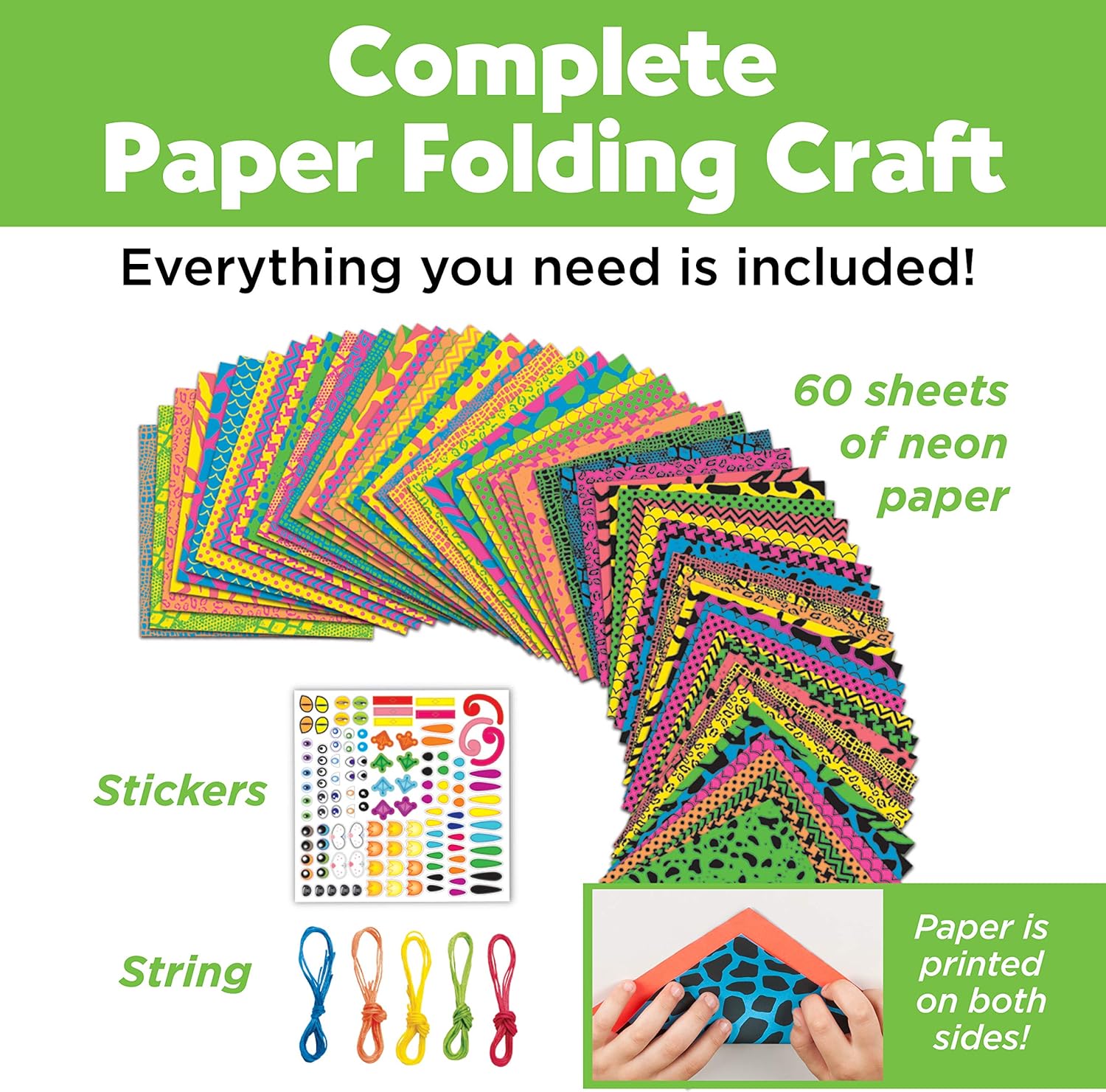Learn the ancient art of origami with this complete origami craft kit! Super-bright neon paper and fun sticker embellishments make this craft activity more than just folding paper.