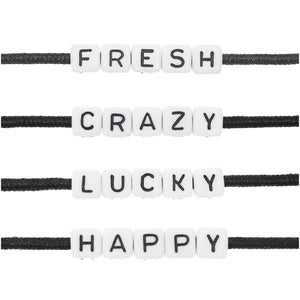 Personalise your creations! With the letter cubes you can string 4 cool statement words onto different ribbons.