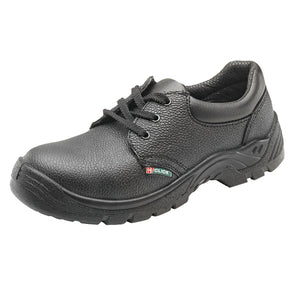 Beeswift Economy Shoe S1p. Dual Density PU. 200 Joule steel toe cap. Steel midsole protection. Shock absorber heel. Anti-static. Oil resistant sole. Slip resistant. Leather upper. Conforms to EN ISO 20345:2011 S1P SRC.
