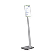 Durable Information Sign Floor Stand A4 481223. Anti glare panel. Panel can be rotated from portrait to landscape. Height adjustable. Viewing angle of the panel can be adjusted. Weighted base with rubber pads.