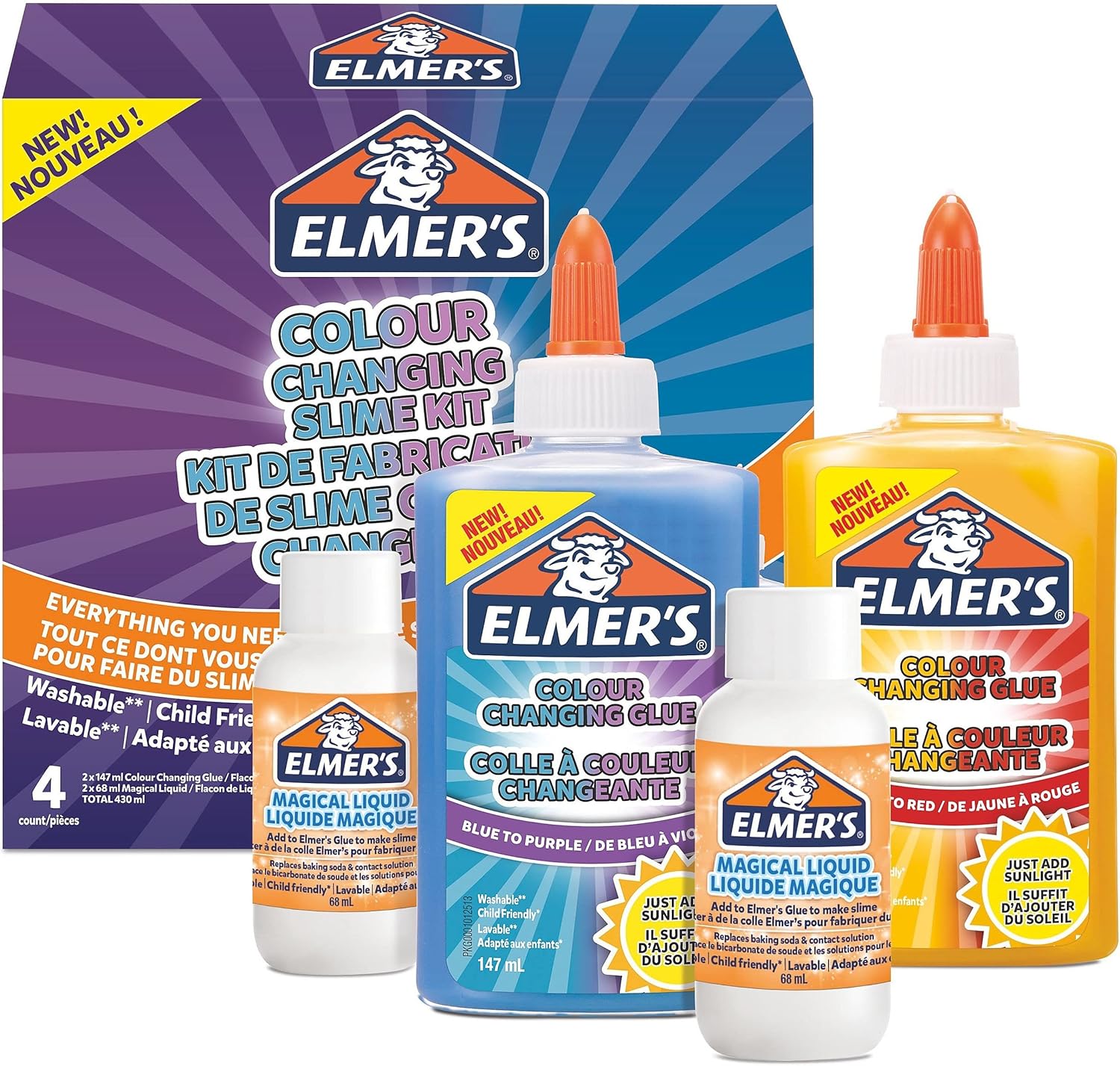 Discover the magic of slime with the Elmer’s Colour Changing Slime Kit that transforms from one colour to the next when exposed to sunlight.