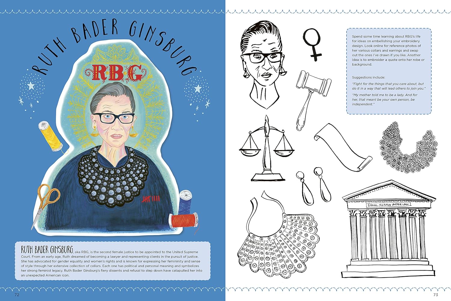Once you’ve sketched your figures, follow along with the step-by-step embroidery projects as you learn to stitch the women featured in the book—and anyone else you admire!