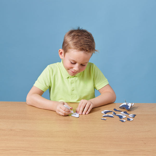 Simply glue the pieces together in numerical sequence, with assembly taking 10-20 minutes. Designed in New Zealand and patented.