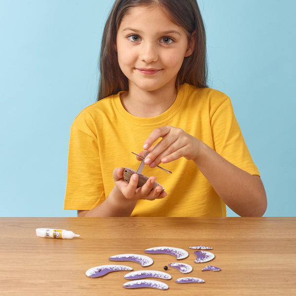 Made from environmentally friendly, recyclable card with natural eco-friendly ink and non-toxic glue. Simply glue the pieces together in numerical sequence, with assembly taking 10-20 minutes. Designed in New Zealand and patented.