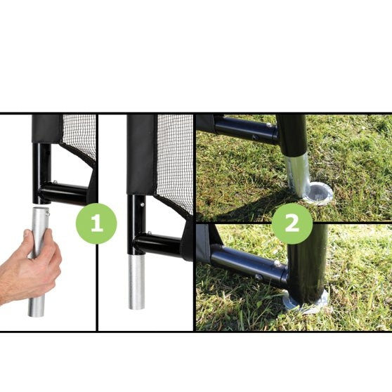 The EXIT Toys Finta football goal comes standard with an anchoring set that consists of ground anchors and anchor tubes. Because of this the football goal is strong during football and lets you remove the football goal very easily while mowing the lawn and when you want to play again, the goal is re-positioned in the right place in a trice.
