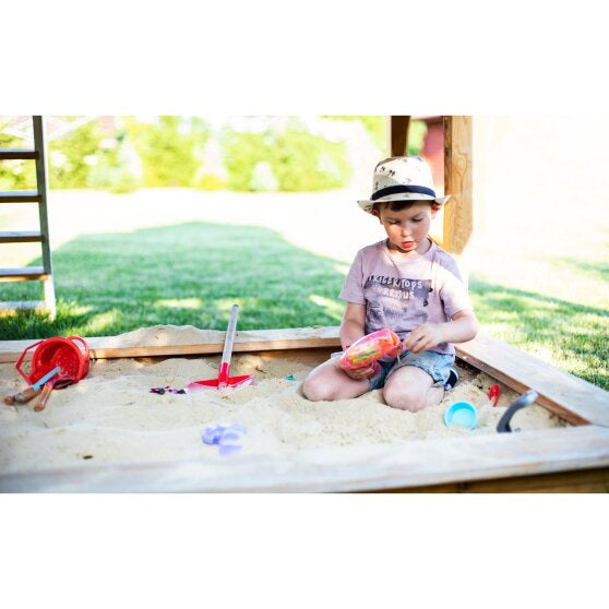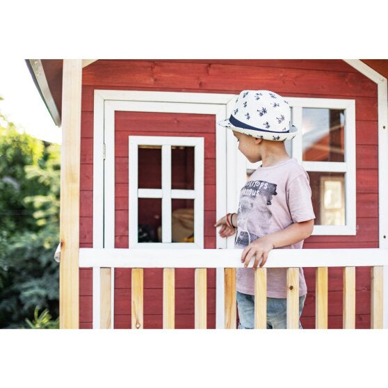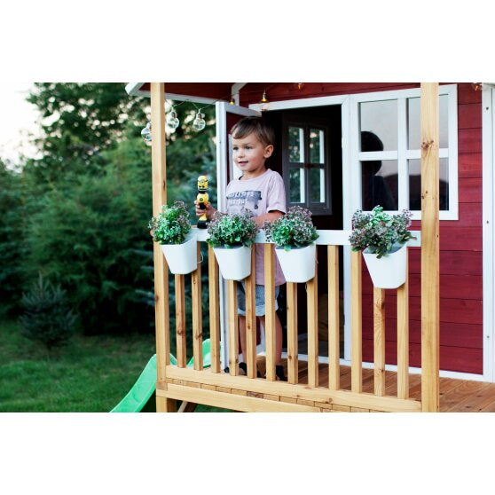 Every child would like to have his/her own playhouse in the garden. A safe place to play and relax with friends, brothers and sisters. The Loft 700 is such a playhouse. With its large dimensions the Loft 700 is a spacious house where children can play freely. This playhouse also comes with a large sandbox area. The raised playhouse has a real terrace (1.20 high) and you use the slide to get back down! And even in the rain it stays dry inside because of the waterproof roof. With its joyful colours this is the ideal playhouse and a dream come true for every child.