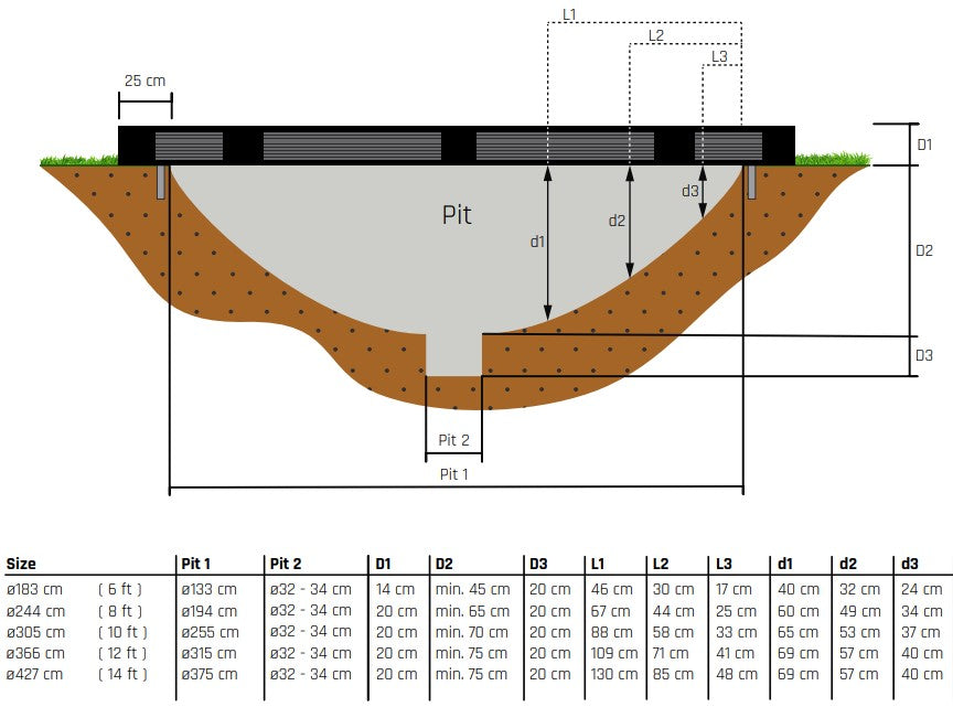 The trampoline features high-quality padding that covers galvanised springs and a specially designed feet safety system to prevent tangles.