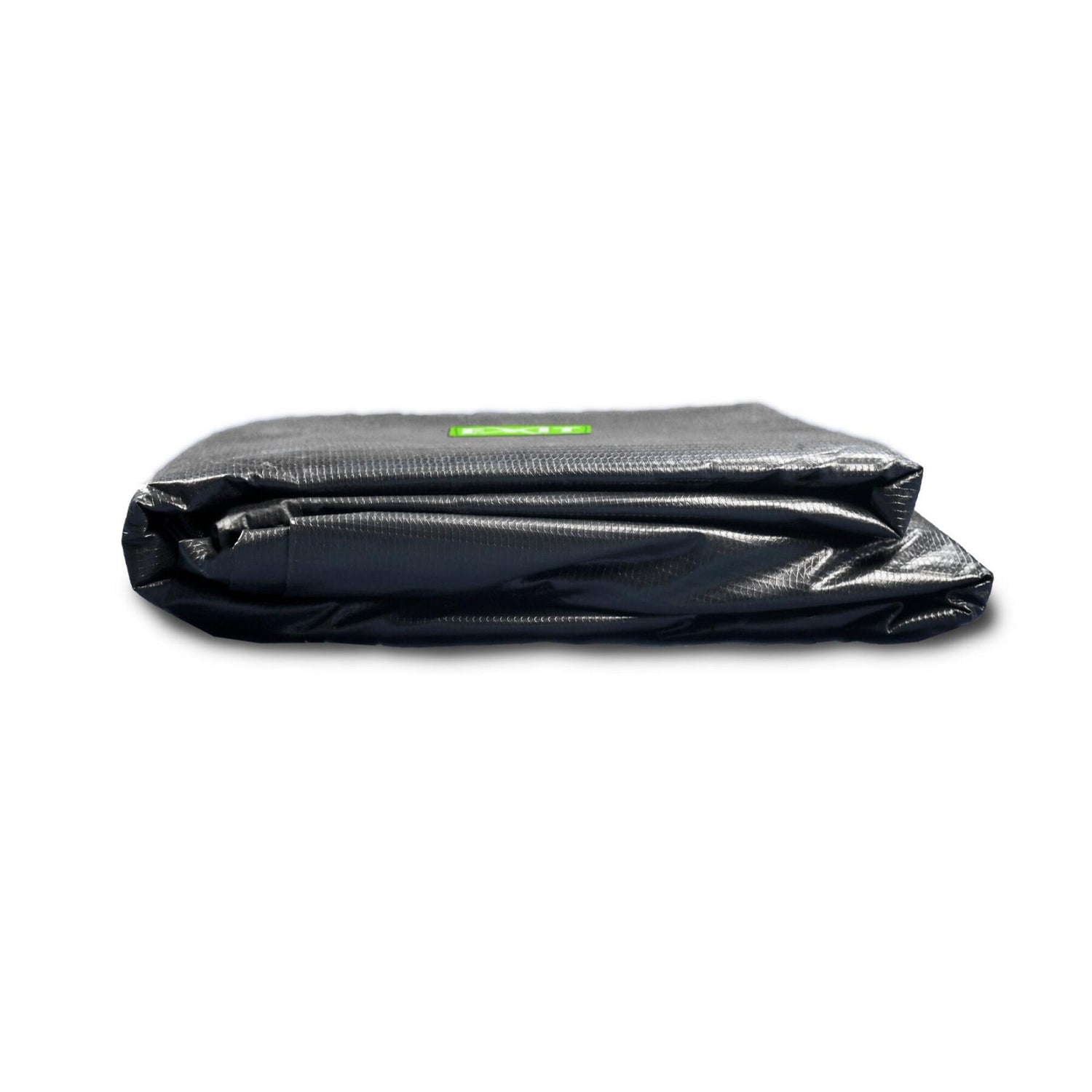 Durable black EXIT Premium pool cover shields 488cm round frame pools from weather and debris.