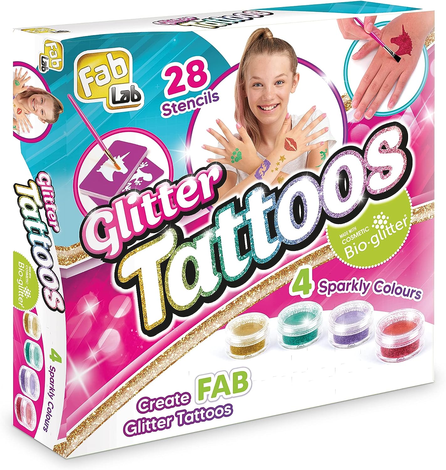 Join the glitter tattoo craze with FabLab Glitter Tattoo kit.