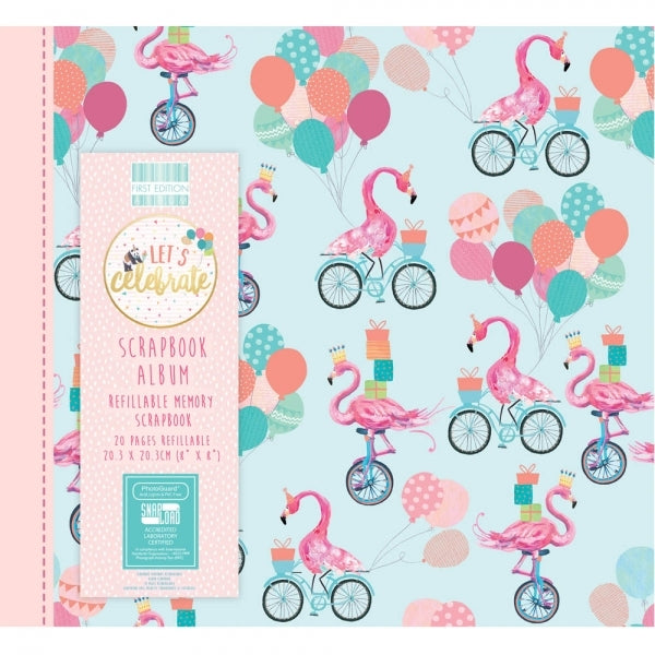 Preserve your treasured memories in this First Edition Let’s Celebrate Scrapbook Album. Fill the pages with photographs, tickets, embellishments or other keepsakes to be saved and remembered for many years to come. Louise Tiler’s fun party-themed illustrations feature a stylish flamingo and a beautiful pastel colour-scheme. This eye-catching album also contains 20 clear, refillable pages and features an expandable clear jacket. The Snapload Binding system holds the pages together so that additions can be added, allowing you to alter your scrapbook album at any time.