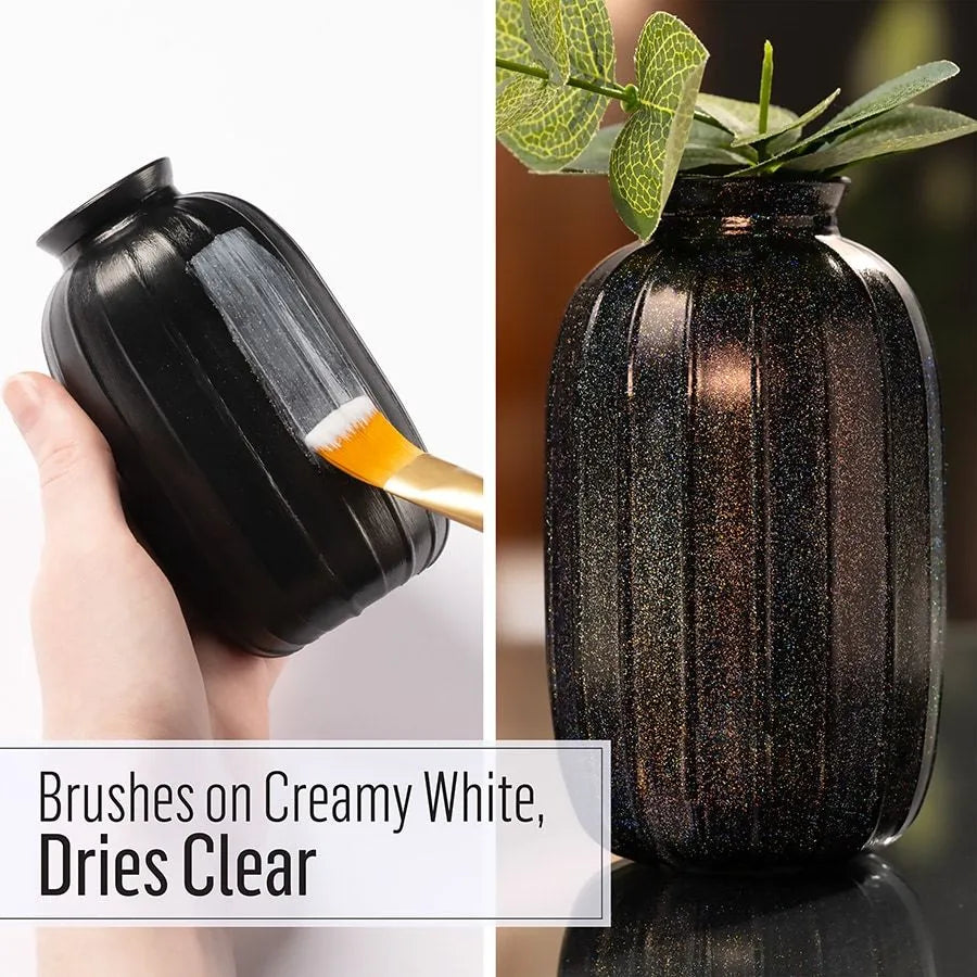 - LUSTROUS, IRIDESCENT FINISH - This iridescent acrylic paint top coat has extraordinary light-reflective pigments to create a beautiful iridescent, gloss finish. In light, this shimmering coating allows multiple colors to be viewed from different angles. Each color brushes on creamy, white, but dries clear