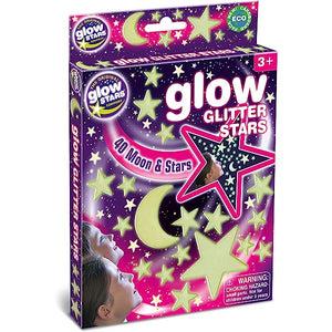 Pretty Glow Glitter Stars are a sparkling, must-have decoration for any bedroom. Includes 39 high-quality plastic stars and one moon.