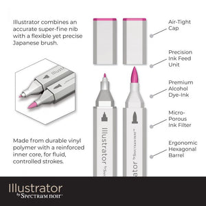 These pens share the same colour chart as the original Spectrum Noir alcohol markers, whilst offering an exclusive Japanese nib combination for long lasting control and performance.