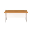 Jemini Rectangular Panel End Desk 1800x800x730mm Nova Oak/White KF804840. Suitable for a variety of office environments. 25mm thick desktop with dual cable management ports. Modesty panel included as standard. Sturdy panel end legs. Non-returnable.