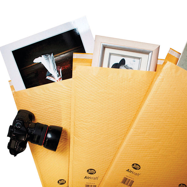 Jiffy Airkraft Bubble Bags. Bubble lined envelopes. Size: 115 x 195mm. Colour: Gold.