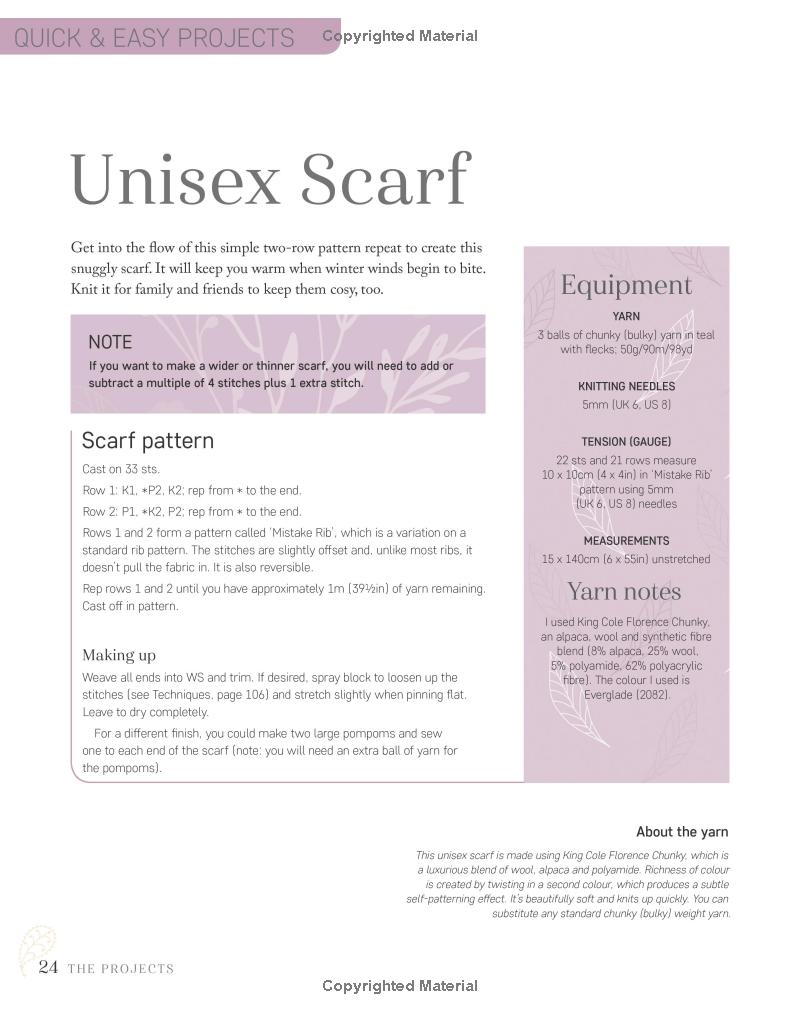 The book is aimed at beginners as well as more advanced knitters, but does not include anything more complex than basic knit and purl stitches, increasing, decreasing and some simple colour work.