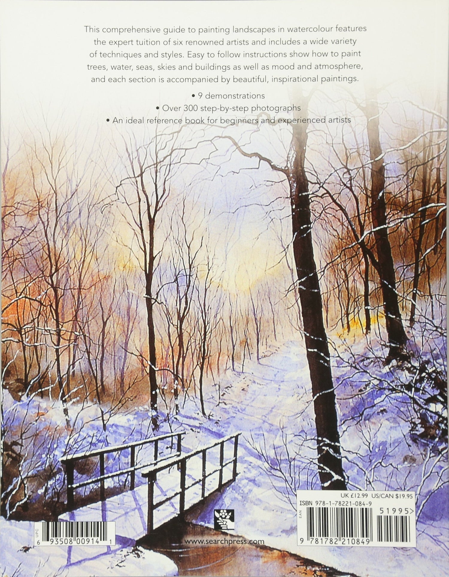 This comprehensive guide to painting landscapes in watercolour features the expert tuition of 6 renowned watercolourists. It covers materials, colour, watercolour techniques such as wet into wet, spattering, dry brush, lifting out and using salt, composition, planning a paintingk sketching, perspecive, tone and painting trees, water, seas, skies and buildings, as well as mood and atmosphere. There are eleven beautiful step by step demonstrations.